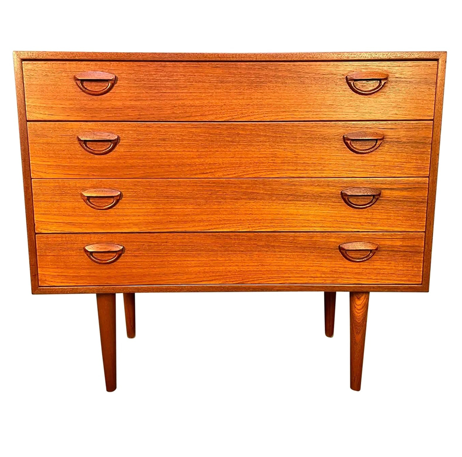 So, what exactly gives the Kayley Chest its distinctive look? It's all in the details, or rather, the deliberate lack of excessive ornamentation. You'll notice immediately the clean, uncluttered lines – a hallmark of MCM. There's no fussy carving or heavy embellishment here. Instead, the beauty shines through the natural grain of the wood, often teak or walnut, which were immensely popular choices during that period due to their rich color and durability. The proportions are usually well-balanced, creating a sense of visual lightness even in a substantial piece of furniture. It doesn't dominate a room; it complements it. Imagine it in a room, it just… fits, you know? It doesn't shout for attention, it just quietly exudes confidence. And that's a part of its charm, a big part.