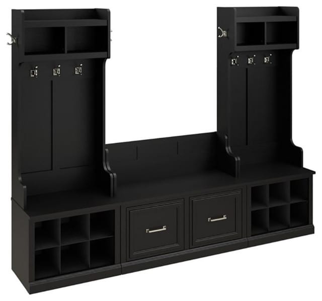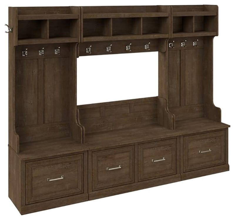 Woodland entryway storage sets come in a variety of configurations, but there are several components you will find pretty often. Here's a run-down of the usual suspects: