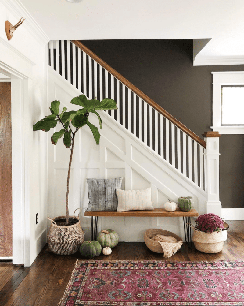While the compact bench is undoubtedly the star of this entryway show, it doesn't have to perform alone. To truly elevate your entryway design and maximize its potential, consider pairing your bench with a few complementary elements. These additions can enhance both the functionality and the aesthetic appeal: