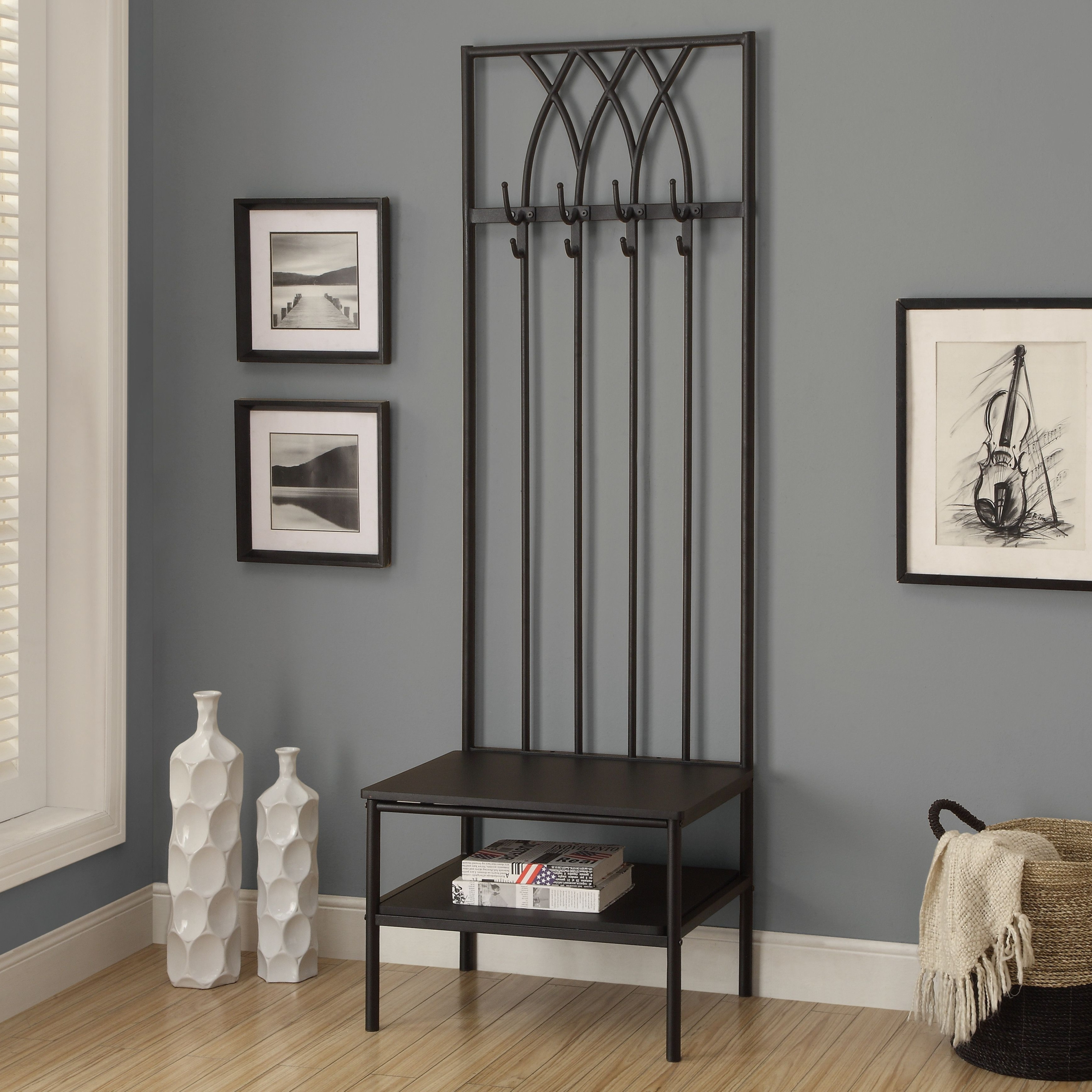 A hall tree, even a black metal one, is fundamentally a practical piece of furniture. It’s designed to hold coats, hats, bags, and often, provide a spot to sit while putting on shoes. In contemporary spaces, where every item is often expected to serve multiple purposes, the multi-functional aspect of a hall tree is a huge plus. Look for models that incorporate smart storage solutions: perhaps a built-in bench with hidden compartments, or hooks at varying heights for different family members. Open shelving can be used for decorative items as well as practical storage – a stylish basket for mail, a small tray for keys, or a curated collection of small art pieces. The beauty of black metal is that it can accommodate a variety of storage accessories, from sleek, modern bins to more rustic wooden crates, without clashing. It’s about making your life easier, but in a really good-looking way.