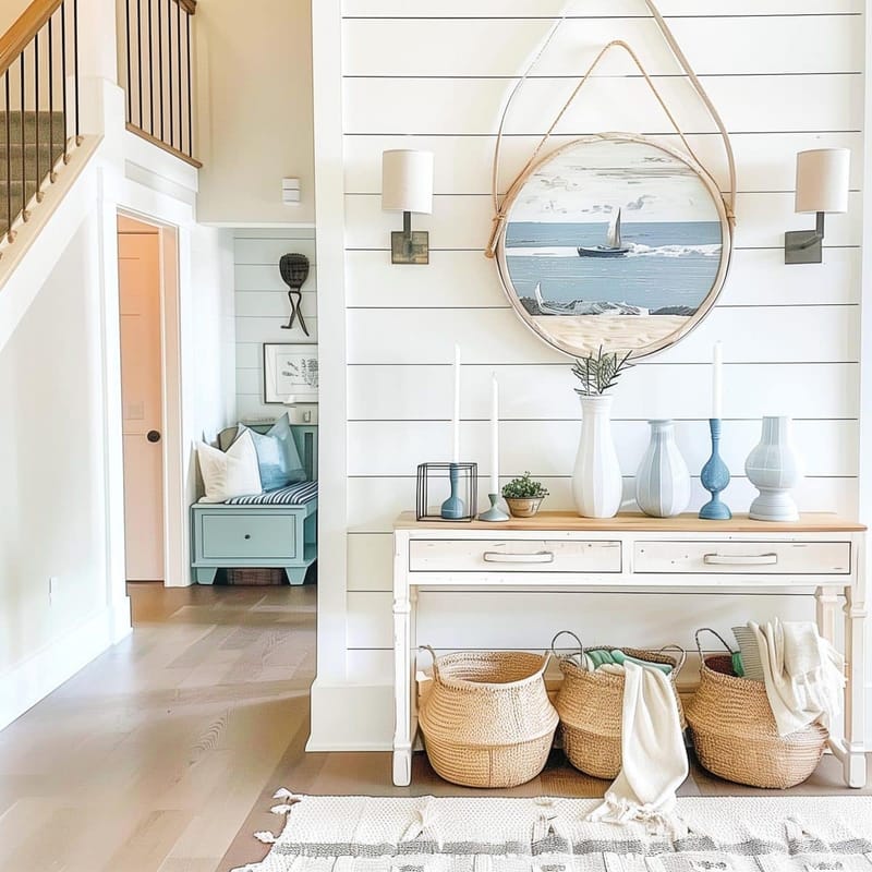 Creating an entryway with effortless coastal charm is all about thoughtful organization and embracing natural elements. By incorporating smart storage solutions like baskets, console tables, and vertical shelving, and by layering in those beautiful coastal colors and textures, you can transform your entryway from a clutter zone into a serene and stylish welcome. It’s not about perfection, but about creating a space that feels relaxed, inviting, and truly reflects the calming spirit of the coast. So go ahead, embrace the beachy vibes and make your entryway the beautiful, functional first impression your home deserves. Happy decorating!