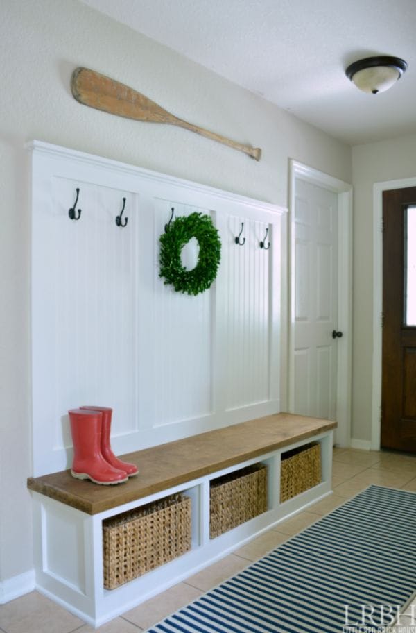 - Seating: A wooden bench or a charming stool can be incredibly useful for putting on or taking off shoes. A bench with a natural wood finish or even a pair of log stools can really enhance the theme.