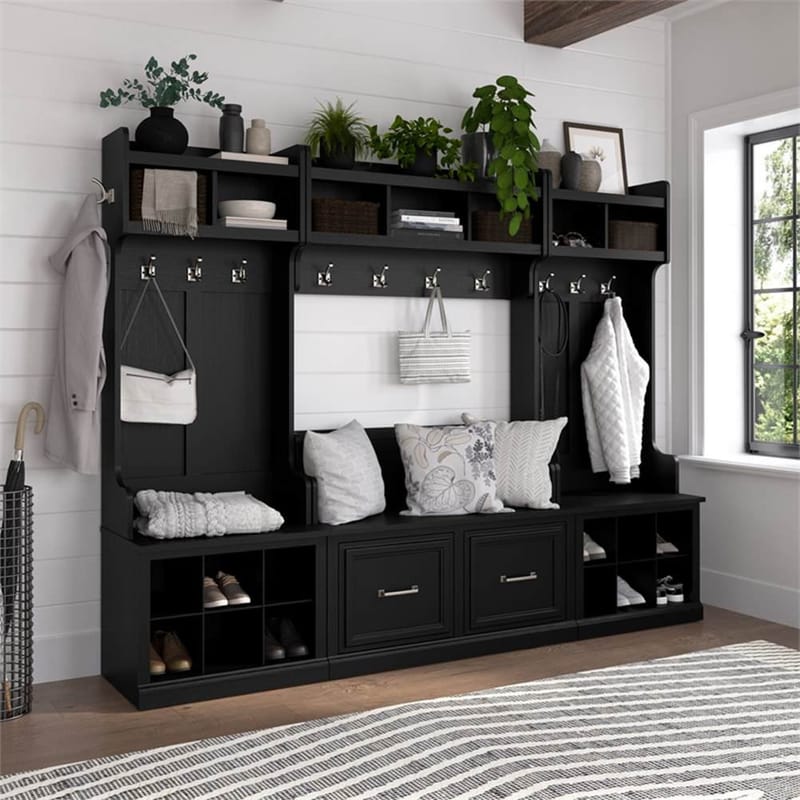 Bowery Hill clearly understands that entryway storage isn't just about aesthetics; it's about solving a real-world problem: keeping your entry tidy and functional. Their designs for these Black Suede Oak pieces are a masterclass in balancing beauty with practicality. You’ll often find features like: