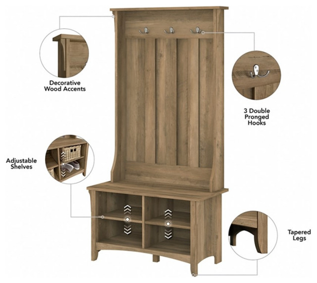 Beyond their good looks, vintage black Pemberly Row hall trees are incredibly functional. They declutter your entryway, providing a designated spot for everything. Imagine coming home on a rainy day – your wet coat has a place to hang, your umbrella can be tucked away, and your keys can rest on a shelf. Many models include a bench seat, perfect for sitting down to put on or take off shoes. This practicality is paramount in busy households. Furthermore, the vintage black finish complements a wide range of interior design styles, from traditional and rustic to modern and eclectic. It’s a neutral yet impactful color that can anchor a space.
