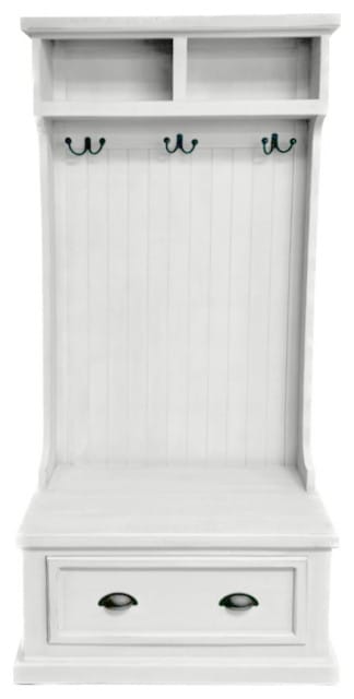 Let’s be honest, a hall tree needs to do things. And bright white rustic hall trees excel in the functionality department. They are designed with practical needs in mind, offering a multi-faceted solution for entryway clutter.