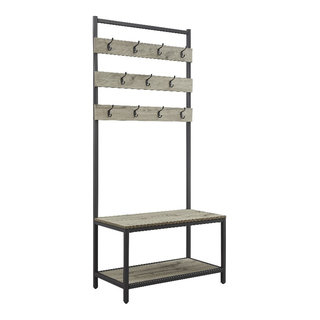 Let's start with its most obvious role: the entryway. The Larkin Hall Tree is designed to be a central hub. Those robust hooks are perfect for coats, scarves, and even dog leashes. The bench offers a comfortable perch for putting on or taking off footwear, and underneath, there's often space for shoe storage – maybe a couple of baskets or designated shelves. But it's not just about stashing things away. The top shelf or the area above the hooks can be a display space. Think a small plant, a framed photo, or a decorative bowl for keys and loose change. It creates a welcoming first impression and keeps the entryway tidy and functional. It’s a practical addition that can significantly reduce the clutter that often accumulates right inside the front door.