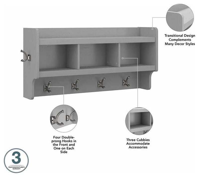 - Hooks and racks: For hanging coats, bags, and hats.
