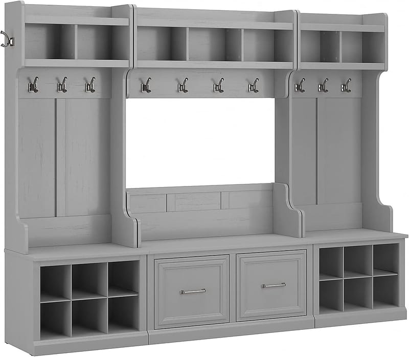 - Shoe racks or cubbies: Keep footwear tidy and off the floor.