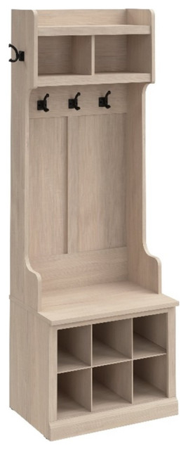 This is where the Bowery Hill Hall Tree truly shines. Its vertical design means it occupies a relatively small footprint on your floor but offers significant storage capacity. Instead of coats and bags piling up on the floor or a console table, everything has its designated place. The bench provides a practical spot to sit, preventing you from having to balance precariously while trying to put on or take off footwear. The hooks keep outerwear readily accessible but neatly stored, and any additional shelving or cubbies are perfect for corralling smaller items that tend to get lost. Imagine walking into your home and seeing everything in its place – it’s a small change that makes a huge difference to your daily routine and overall sense of calm.