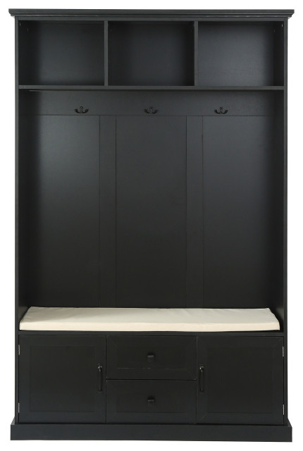 Here's where things get interesting. You might think that practical storage solutions have to look plain or utilitarian. Not so with the Gewnee Hall Tree. Its sleek black finish creates a sophisticated look that complements both modern and traditional decors.