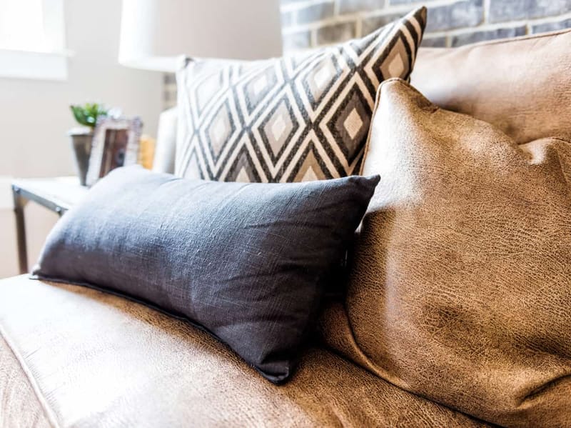 - Play with Textures: Leather is smooth and rich, so layering in different textures – soft knits, plush velvets, rougher linens, woven materials – adds depth and interest.