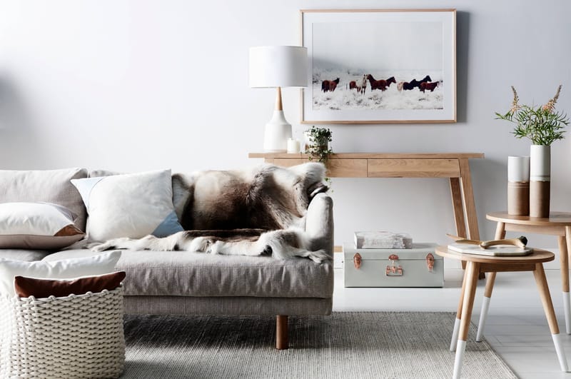 For throws and pillows, stick to tougher textures like canvas, denim, or distressed leather. Colors can be muted and earthy, with pops of darker shades like black or deep olive.