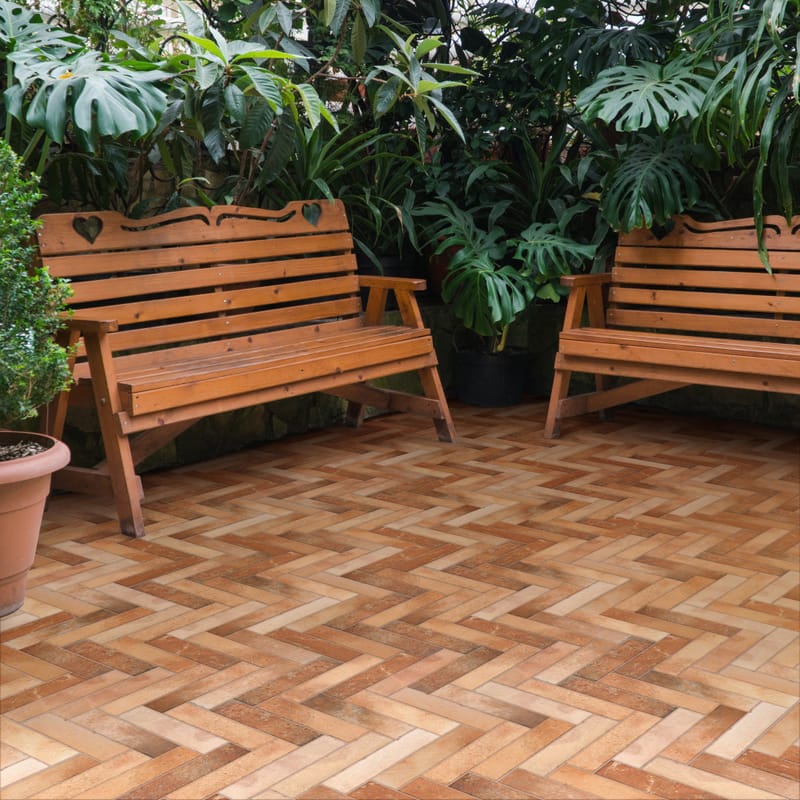 - Outdoor Patio: Think of a patio with brick-look porcelain tile, a comfortable seating area, and a fire pit. The tile is durable and weather-resistant, perfect for outdoor living.