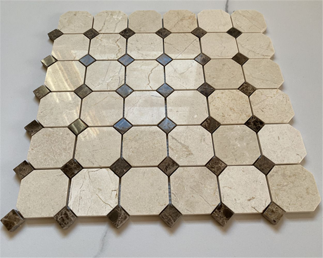 Once your tiles are installed, it's important to care for them properly to maintain their beauty. Regularly clean your tiles with a pH-neutral cleaner specifically designed for natural stone. Avoid harsh chemicals or abrasive cleaners, as these can damage the marble. Wipe up spills immediately to prevent staining. Use soft cloths or sponges to clean the tiles. Avoid using steel wool or other abrasive pads. Reapply sealant every year or two to protect the tiles from stains and moisture. Inspect your grout lines periodically and reseal them if necessary. With proper care, your Crema Marfil mosaic tiles will last for many years and continue to add beauty and value to your home. It's a small effort that makes a big difference in the longevity of your investment. It's absolutely worth it.