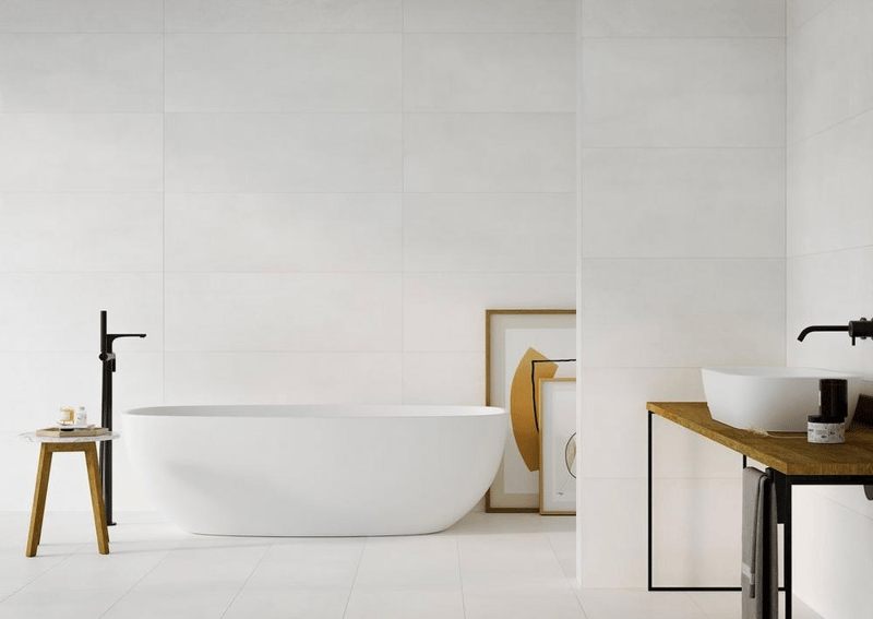 - Living Areas: For a modern, minimalist look, matte white ceramic can be used on feature walls or even as flooring, paired with radiant heating for added comfort.
