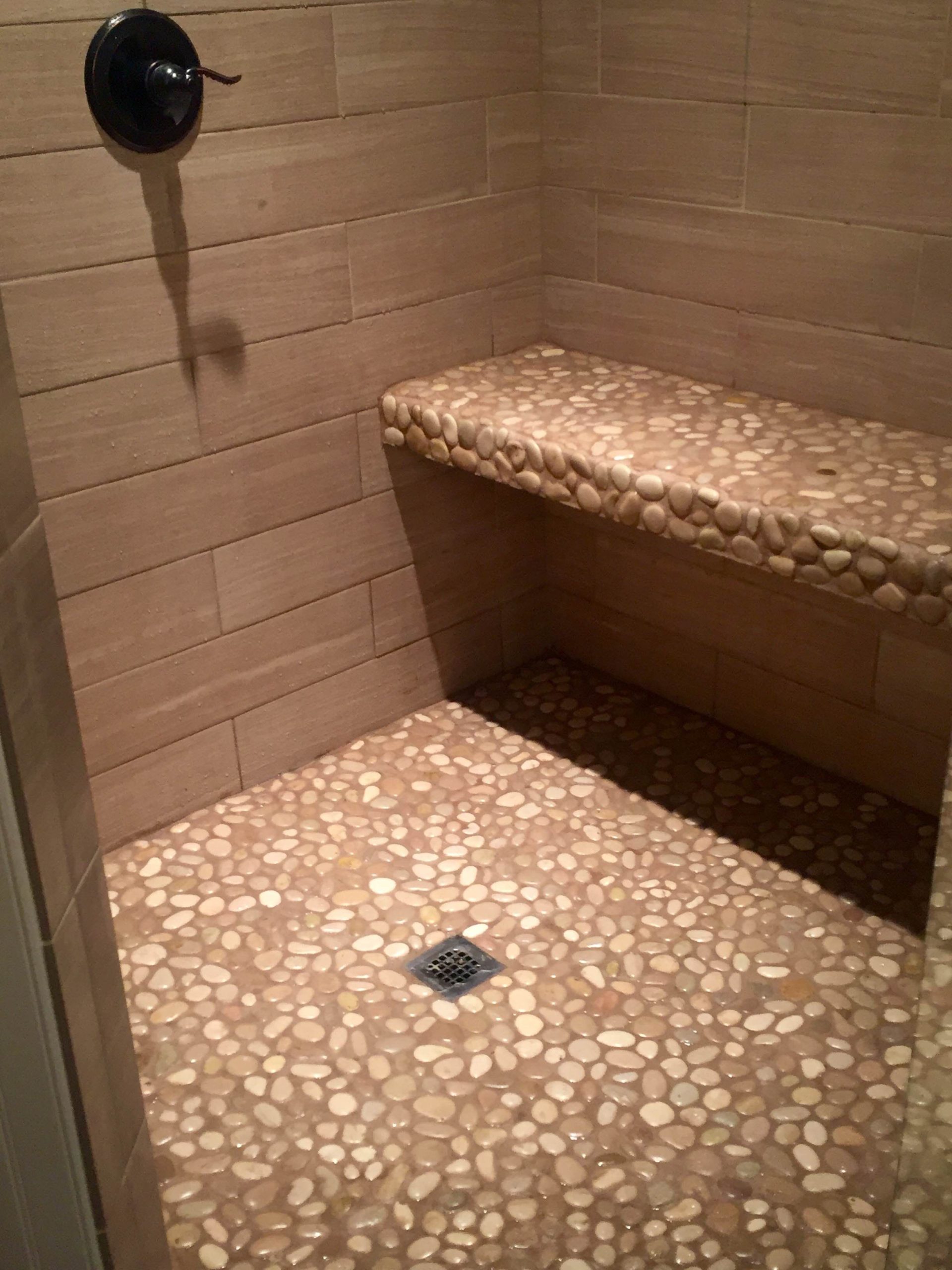 There’s something incredibly soothing about the texture of pebble tile. Stepping onto a floor of smooth, rounded stones can feel like a natural foot massage. This tactile sensation, combined with the natural beauty of the marble, helps to create a tranquil, spa-like atmosphere in your shower. It transforms a routine activity into a more luxurious and mindful experience. Imagine the steam rising, the gentle flow of water, and the comforting feel of the pebbles beneath your feet. It’s an invitation to relax, de-stress, and reconnect with yourself. It’s a small detail that makes a significant difference in the overall feel of your bathroom.